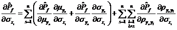 與獨立變量情況類似,變量相關情況下的可靠性試驗靈敏度定義為失效概率對基本變量分布參數(shù)的偏導數(shù),以