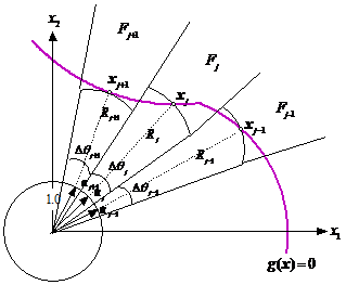 為射線角的扇形,它們與失效邊界的交點處的特征半徑記為