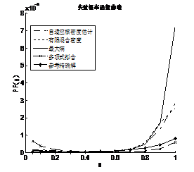 對于此工程算例,利用900個失效樣本點擬合概率密度函數和全局靈敏度。由圖8.7可以看出基于有限混合密度和自適應核密度估計方法得到的失效概率函數曲線波動較大,其他兩種方法雖也有較大誤差,但與參考精確解的曲線的趨勢較為貼近。由圖8.8可以看出基于最大熵密度估計法與正交多項式擬合概率密度法所得的全局靈敏度曲線與參考精確解的曲線相差不大,而基于有限混合密度法與自適應核密度估計法得到的全局靈敏度仍然波動較大。